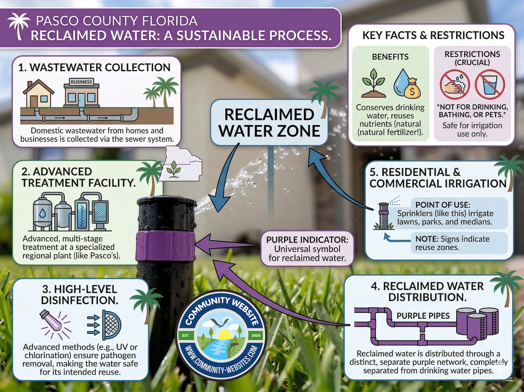 If you've lived in Pasco County for more than a few months, you've probably noticed the purple pipes, purple valve covers, and the little signs that say "Do Not Drink — Reclaimed Water" scattered across neighborhoods from Wesley Chapel to New Port Richey. Maybe you moved here from out of state and had no idea what reclaimed water even was. Or maybe you've been here for years and still aren't totally sure when you're supposed to be running your sprinklers.